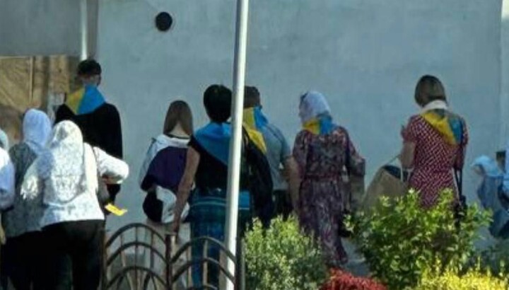 On May 25, 2023, footage appeared on social media showing a group of people in yellow and blue ties getting off buses parked next to the Kyiv-Pechersk Lavra and moving towards the Assumption Cathedral of the monastery. The video was published on the Myriany Telegram channel.