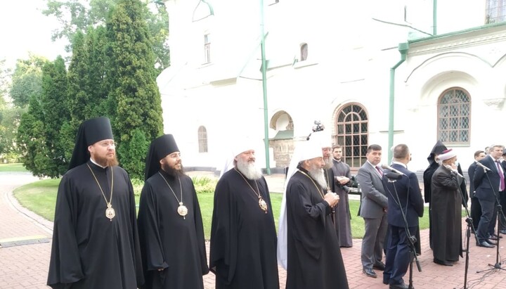 At the festive event, the Primate of the UOC was accompanied by Metropolitan Pavel of Vyshgorod and Chernobyl, the UOC Chancellor, Metropolitan Anthony of Boryspil and Brovary, vicars of the Kyiv Eparchy Bishop Mark of Borodianka and Bishop Dionysius of Pereyaslav-Khmelnytskyi, Deputy Head of the Department for External Сhurch Relations Archpriest Nikolai Danilevich.