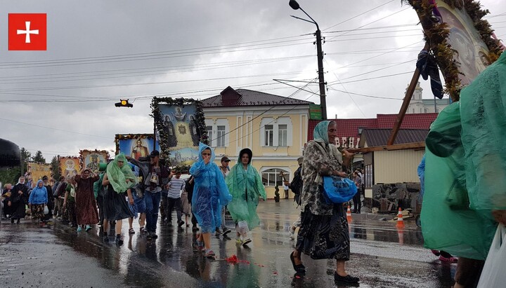 In the pouring rain, thousands of Ukrainian pilgrims with prayers and icons entered the territory of the Holy Pochaiv Lavra.