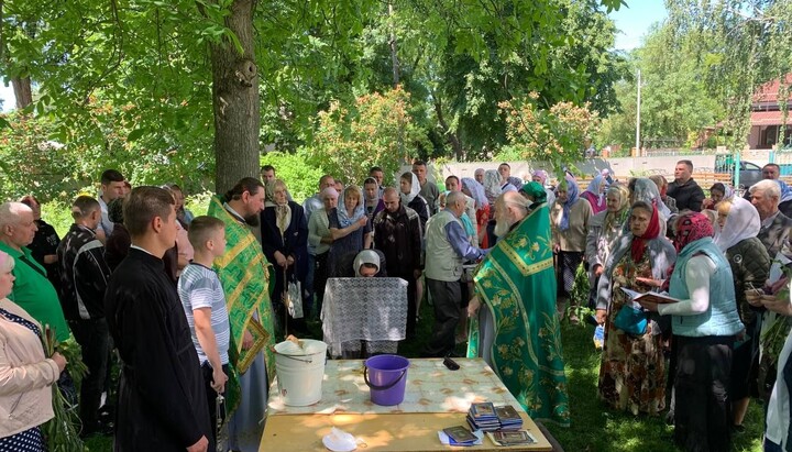 On June 3 and 4, 2023, on Holy Trinity Saturday and Pentecost, more than a hundred parishioners of the Trinity community of Pereyaslav had to pray in a private house of the priest. OCU representatives put their locks on their church and had men with machine guns "guarding" it. The process is led by an OCU chaplain from Transcarpathia named Vidmak (Witcher), "hieromonk" Sofroniy (a.k.a. Anatoly Bortnichuk). He was put in charge of the area by Dumenko.