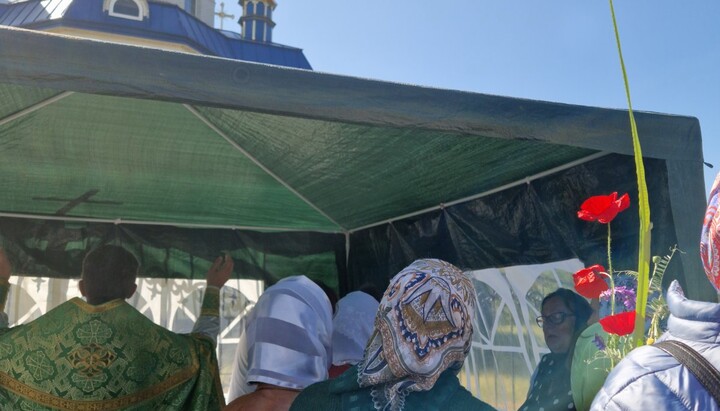 On June 4, 2023, the community of the UOC Intercession Church in Syniak celebrated a festive Liturgy on the Holy Trinity Day in a tent, in front of the closed gates of their own church," sources in the community told the UOJ.
