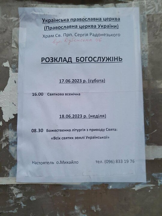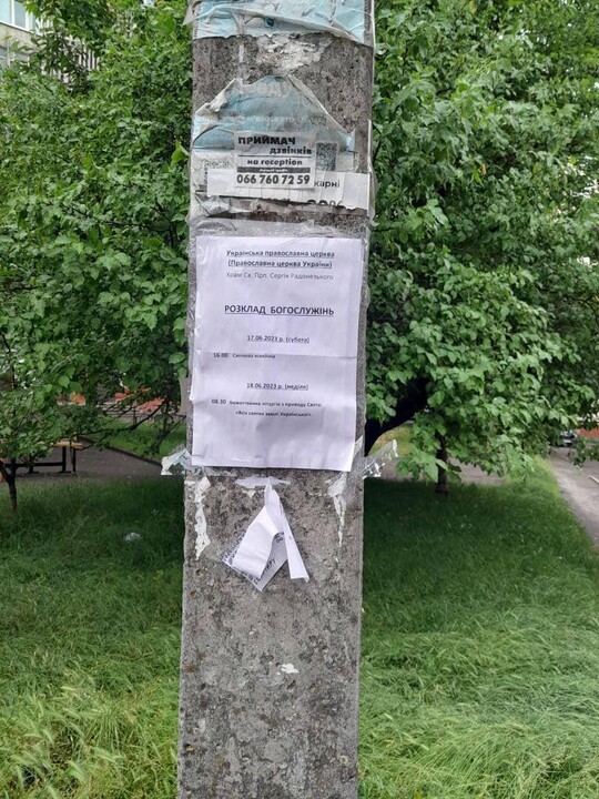 The announcements inform about the schedule of services in the former UOC church.