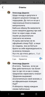 Commenting on his scandalous speech at this congress, Alexander Dediukhin noted that he did so "with the blessing of Metropolitan Epiphany and the ruling bishop."