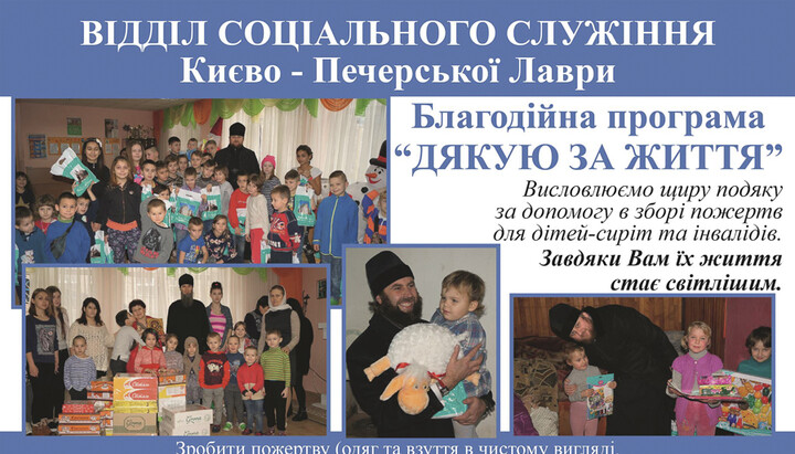 The brethren of the monastery continue to provide assistance to large families, the poor, people with disabilities and encourages non-indifferent people to donate to those in need.