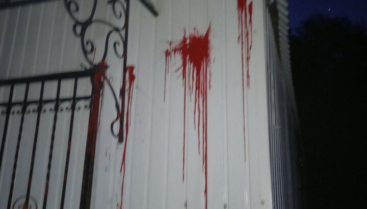 In the courtyard, the priest saw fresh inscriptions on the fence and "bloody" spots painted on the walls with red paint. Also, he said, night guests threw brilliant green and a half-liter jar with an unknown substance in the direction of the trailer on his private territory, which did not break.