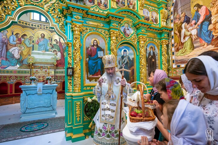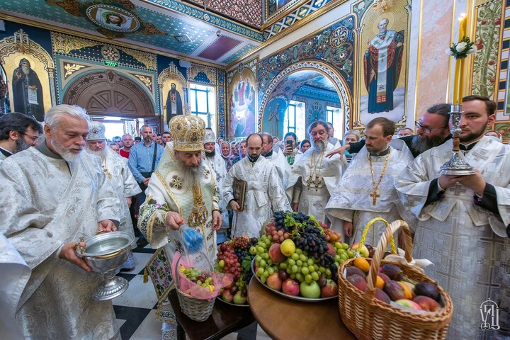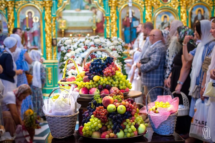 After the liturgy, the Primate read special prayers asking for the blessing of the fruit of the new harvest. The Archpastor sprinkled the flock, as well as grapes and fruit that the faithful had brought, with holy water.