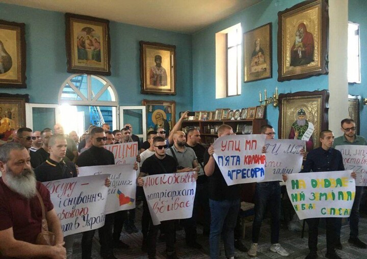 The newcomers behaved very aggressively. They brought banners with political slogans, insulted the priest and parishioners, used obscene language. The raiders organized a "vote" for the "transition" of the church to the OCU and then declared that they would submit their "decision" on changing the jurisdiction of the parish to the authorities.