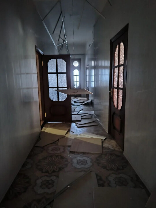 The blast wave blew out windows and damaged building facades, entrance and interior doors and elements of interior decoration.