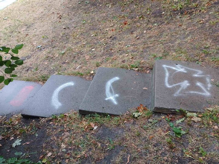 Attackers marred the walls of the temple and the spring with paint. Also near the shrine, unknown persons drew the signs of the sword and Prussian Iron Cross used by Nazi Germany until 1945.