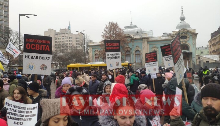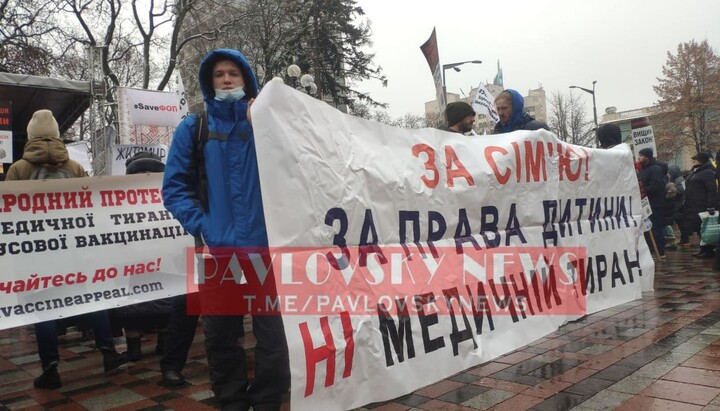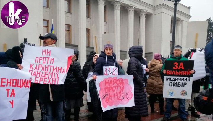 On December 2, 2020, a rally of opponents of bill No. 4142, known as the "compulsory vaccination law", took place in the centre of Kyiv. Photos from the scene were published by Telegram channels Klymenko Time and PavlovskyNews.