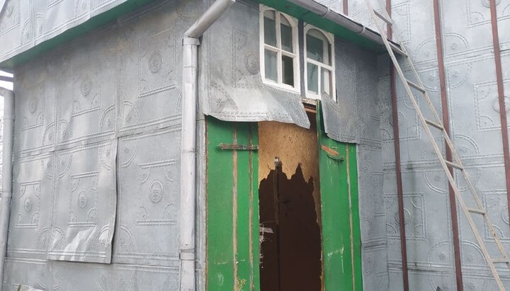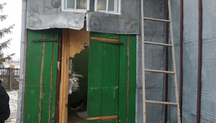 Broken doors of the forechurch of the UOC temple in Mikhalche. Photo: the Information Department of the Chernivtsi Eparchy Broken doors of the forechurch of the UOC temple in Mikhalche. Photo: the Information Department of the Chernivtsi Eparchy