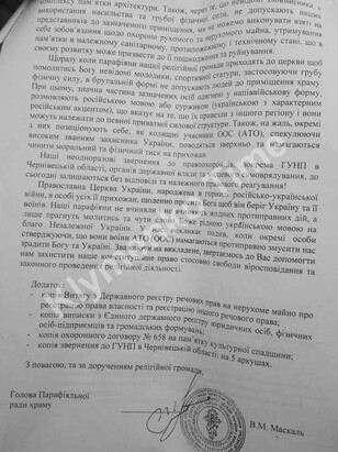 The petition, the text of which came into the possession of the resource, is signed by the “head of the parish council of the temple” from the OCU Vasily Maskal.