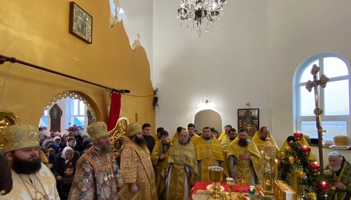The rite of the great consecration of the church and the Divine Liturgy were led by Metropolitan Anthony (Pakanich) of Boryspil and Brovary, Chancellor of the Ukrainian Orthodox Church, concelebrated by Bishop Pimen (Voyat) of Dubno, vicar of the Rivne diocese, and Bishop Ambrosy (Vaynagiy), vicar of the Boryspil diocese, as well as the clergy of the Rivne Diocese.
