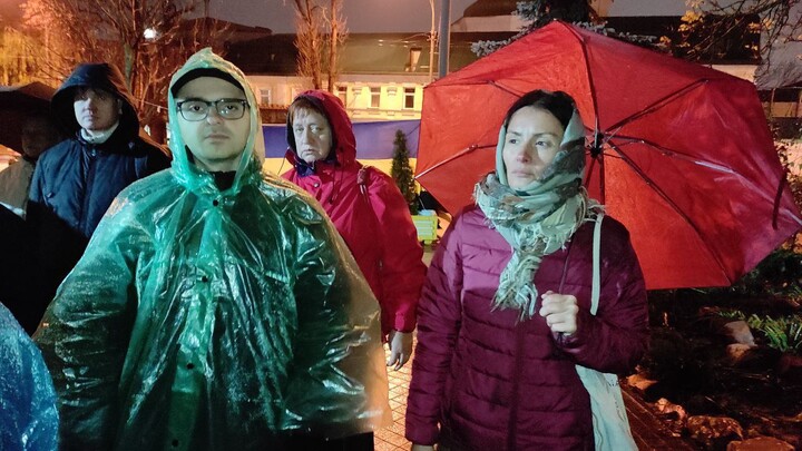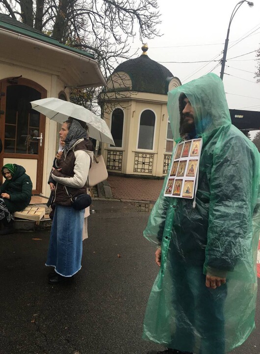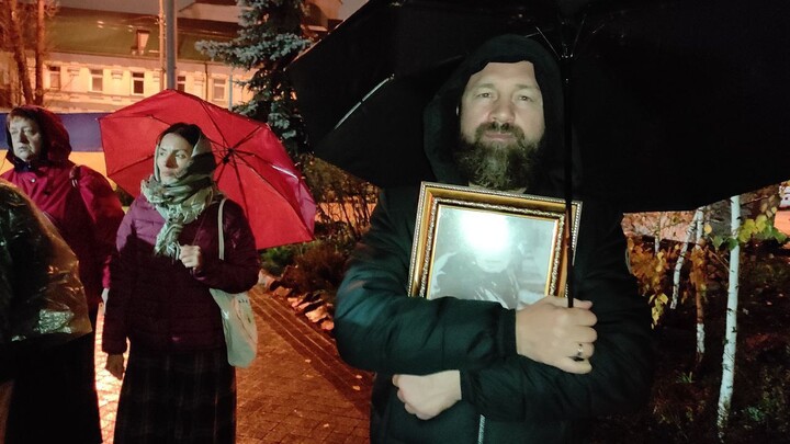 UOC believers pray in the rain near Kyiv-Pechersk Lavra