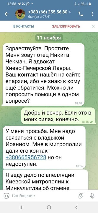 Unknown fraudsters have created in messengers fake accounts of the Kyiv-Pechersk Lavra’s lawyer, Archpriest Nikita Chekman, and with their help to find out confidential information in different eparchies of the Ukrainian Orthodox Church, said Father Nikita on his Telegram channel.