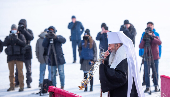 On January 19, 2021, on the feast of Theophany, the Baptism of the Lord, the Primate of the Ukrainian Orthodox Church, His Beatitude Metropolitan Onuphry of Kyiv and All Ukraine, blessed the waters of the Dnieper. The live broadcast from the place of the rite was carried out on the page of the UOC Information Centre on Facebook.