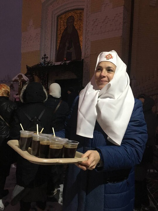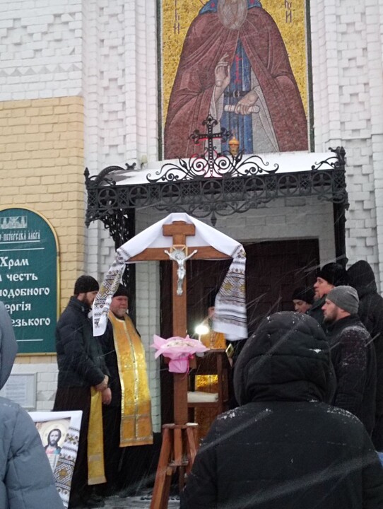 The prayer standing near the Kyiv Lavra continues, despite the bad weather.
