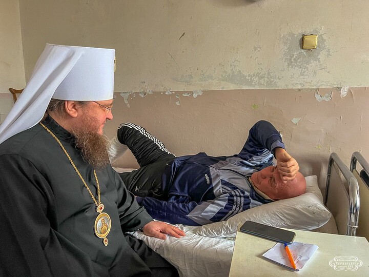 Metropolitan Feodosiy of Cherkasy visited two Cherkasy hospitals where beaten and crippled defenders of the Monastery of the Nativity of the Theotokos seized by OCU representatives on 20 November 2023 are being treated, reports the eparchy’s website. The bishop received for this purpose the permission of the Sosnovsky District Court of Cherkasy.