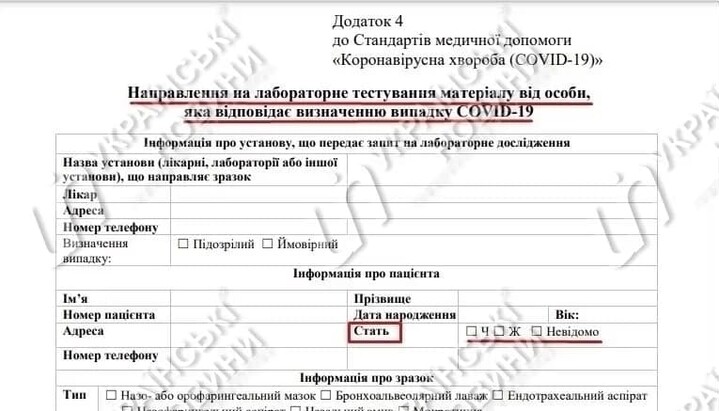 According to the Order of the Ukrainian Ministry of Health, an additional gender appeared in referrals for laboratory testing for COVID-19.