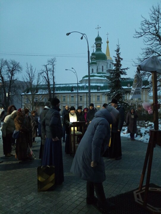 The prayer standing near the Kyiv-Pechersk Lavra. Photo: a video screenshot of the Telegram channel The prayer standing near the Kyiv-Pechersk Lavra. Photo: a video screenshot of the Telegram channel "KozakTV1".