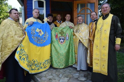 On July 28, 2020, during the celebration of the Christianizarion of Rus’ in the Ternopil region, “patriotic” phelonia with a chevron of the 44th separate artillery brigade were “consecrated” for the chaplain of the OCU. The photographs taken during the "prayer service" of the OCU with the participation of eight village "priests" were shared on his Facebook page by the Orthodox publicist and blogger Alexander Voznesensky.