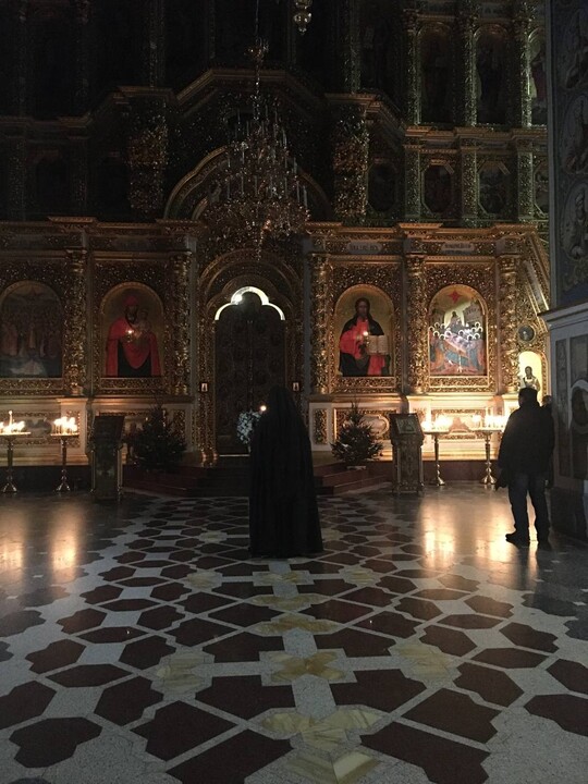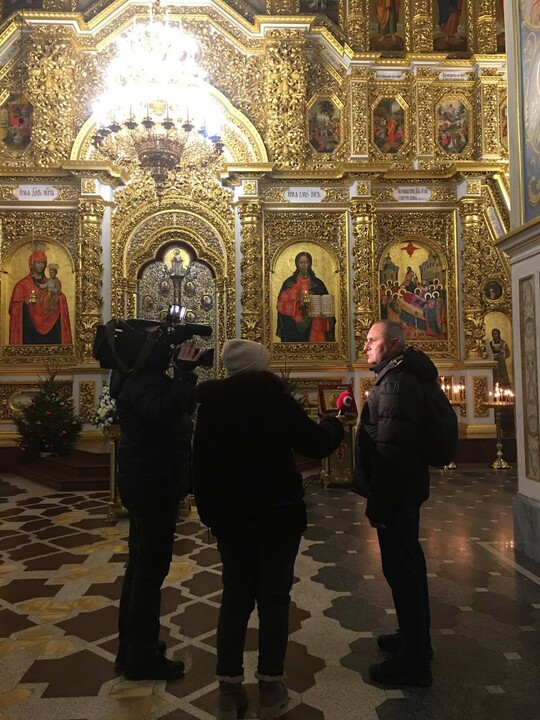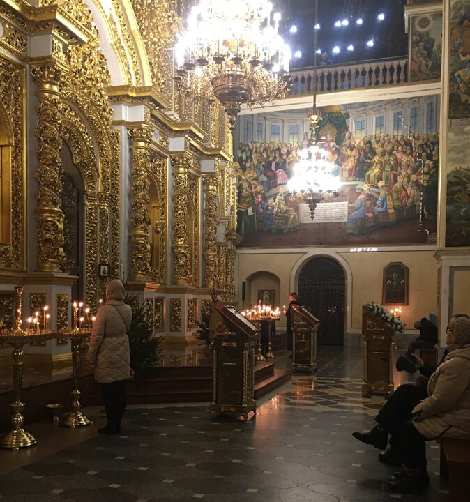 Empty Dormition Cathedral of Lavra during "Christmas service" shown online