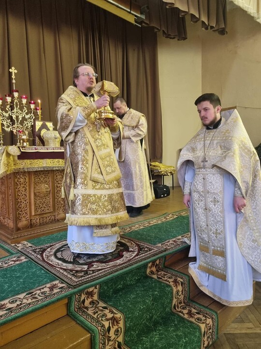 Sts Peter and Paul’s community of Bucha headed by Bishop Arkadiy of Hostomel is performing church services in an adapted room, an assembly hall, reports Archbishop Iona of Obukhiv on his Facebook page.