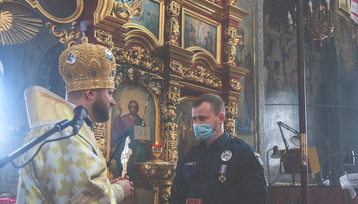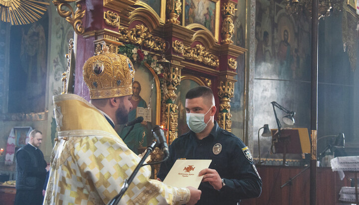 The The "archbishop" of the OCU presented church awards to the police officers and officials who helped to seize the UOC churches. Photo: Facebook page of the Rivne Diocese of the Orthodox Church of Ukraine