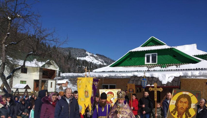 The Holy Dormition community of the UOC in the village of Hryniava, Verkhovyna district, Ivano-Frankivsk region, from which the activists of the OCU took away a complex of two churches, held a religious procession on March 21, 2021, on the Day of the Triumph of Orthodoxy, reports the Ivano-Frankivsk Eparchy.