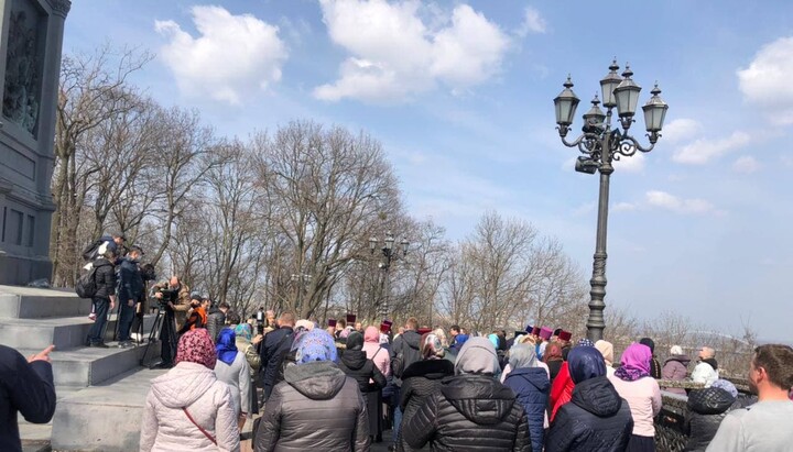 Nearly 100 believers of the Ukrainian Orthodox Church, who suffered from the aggression of schismatics, gathered on the Vladimir Hill for a prayer service.
