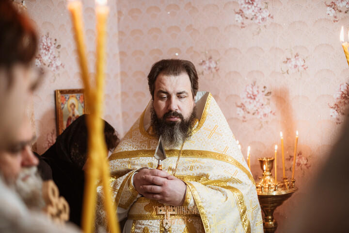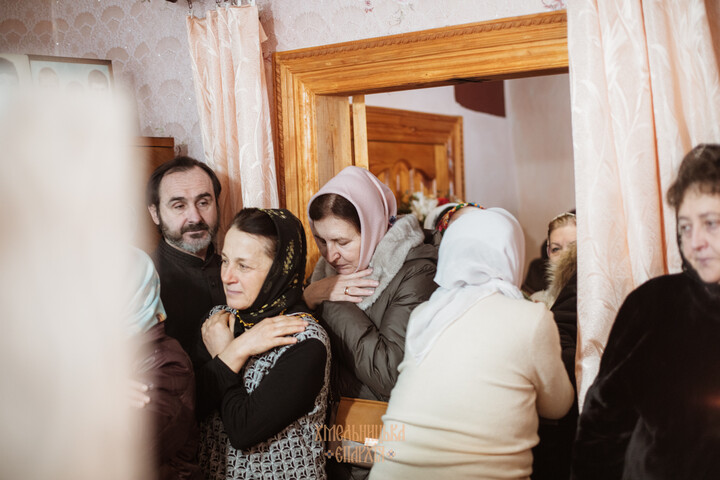The service took place in a rural house repurposed for a temporary church. The premises were provided by one of the parishioners after the forceful seizure of the Dmytriv Church by supporters of the OCU.