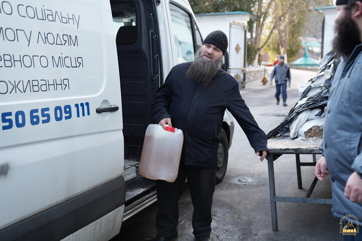 On the same day, the cargo from believers of the Dnepropetrovsk Eparchy was delivered to the Lavra: vegetables, fruit, flour, cereals, sugar, cheese, more than a thousand eggs, and half a ton of vegetable oil.