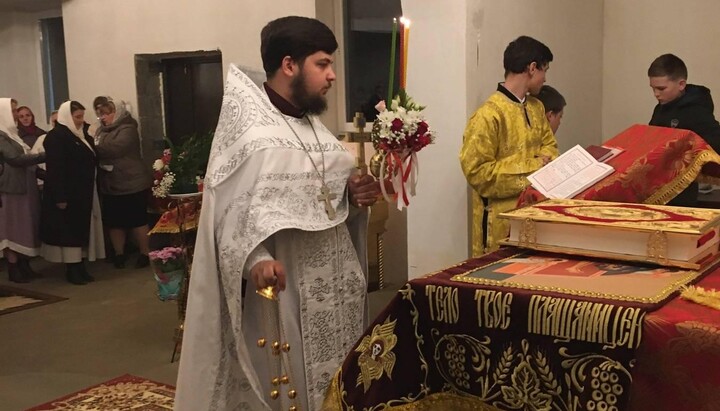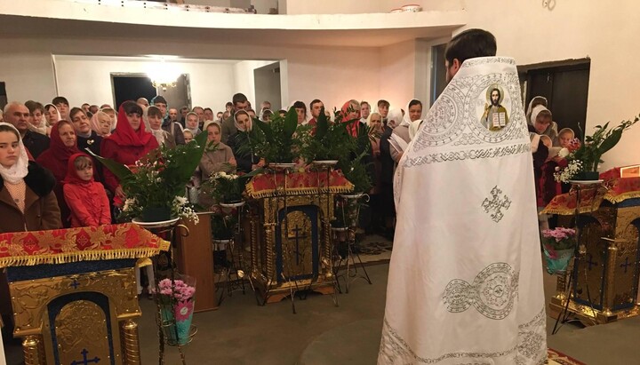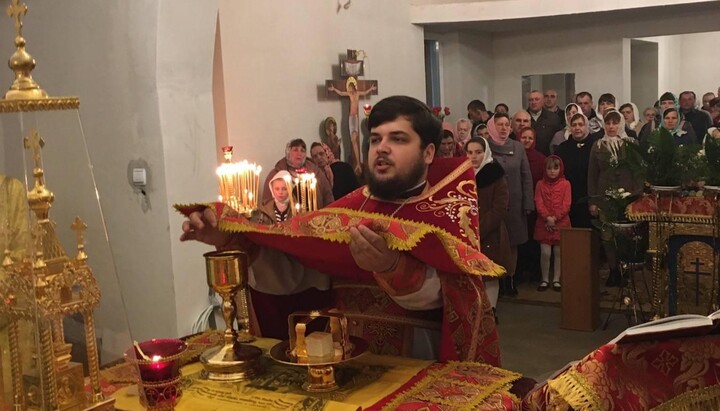 The first service in the new church of the UOC community in Bronytsia. Photo: Nazar Priymak Facebook page The first service in the new church of the UOC community in Bronytsia. Photo: Nazar Priymak Facebook page