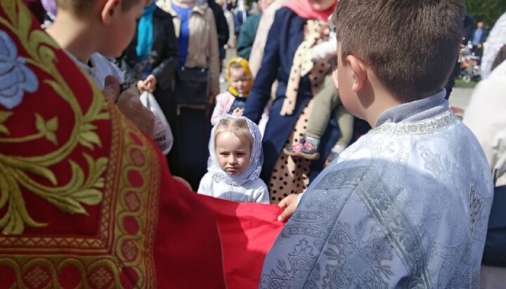On May 16, the religious community of the UOC decided to gather for a divine service, although their church and the entire territory of the temple has been out of the access zone since May 10: everything is locked, law enforcement officers are guarding around the clock.