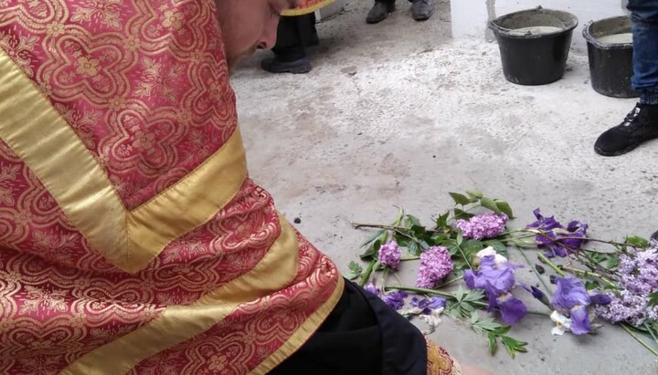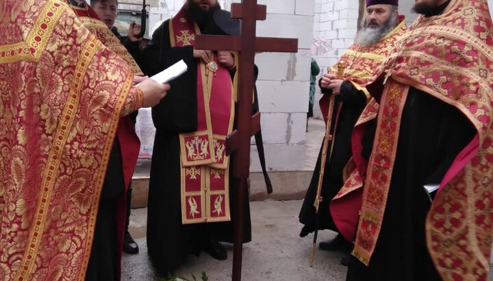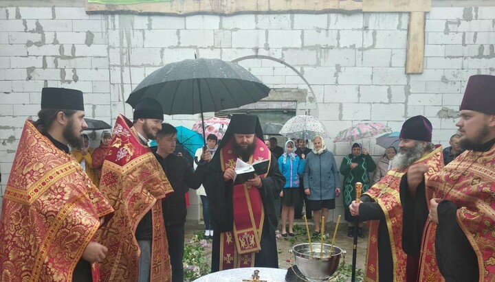 On May 30, 2021, in the village of Moshkov, Rivne region, the vicar of the Rivne Eparchy of the UOC, Bishop Pimen of Dubno, laid a foundation stone and erected a cross at the construction site of a new UOC temple instead of the one seized by OCU raiders, reports a UOJ correspondent.