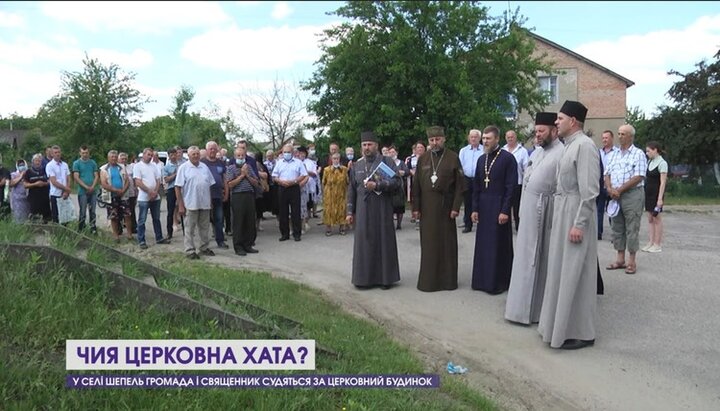 The regional TV channel showed a story about the protest of the Shepel “church community”, which allegedly maintains and repairs the house where the UOC priest lives.