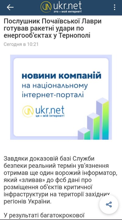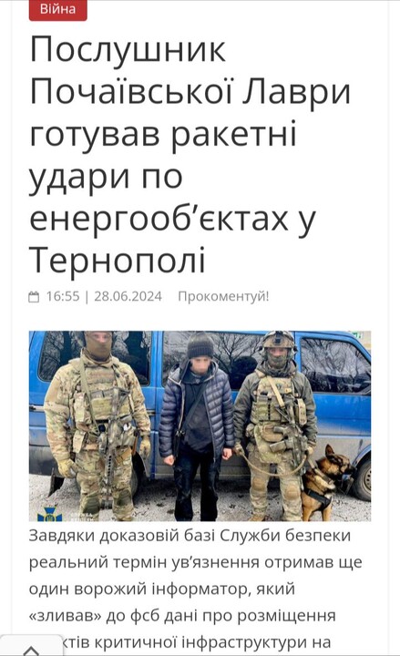 It is noted that some media outlets have been spreading claims that a certain 20-year-old man, sentenced to 15 years for treason, was a novice of the Pochaiv Lavra and lived in the village of Stary Tarazh, Pochaiv OTG.