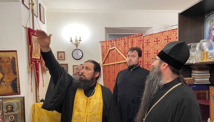 The bishop was accompanied by the spokesperson for the eparchy, Archimandrite Arkady (Senchukovsky), the dean of the 1st city district, Archpriest Bogdan Malinovsky, and the rector of the church, Archpriest Viktor Parandiuk.