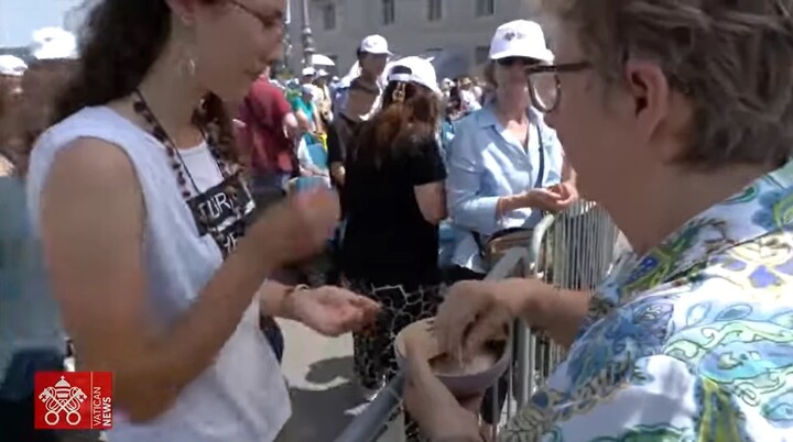 In Trieste, female volunteers "commune" RCC believers during Papal Mass