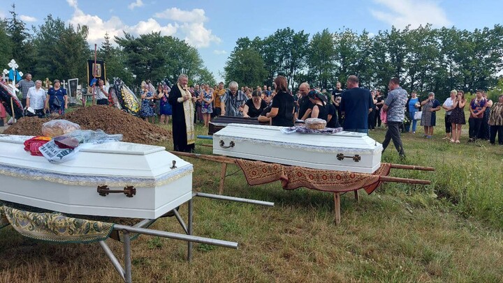 In the village of Slidy, a mother and her two children, who died on July 8 in the capital, were buried.