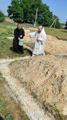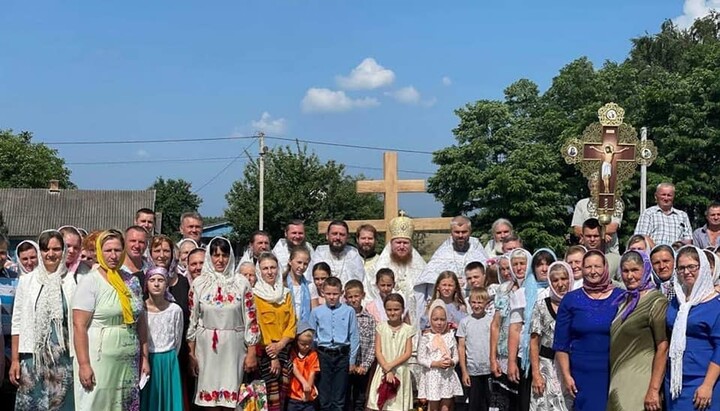 The vicar of the Volyn Eparchy of the UOC, Bishop Athanasius of Kamen-Kashirsky, on July 7, 2021, in the village of Serkhiv of Manevichi district, Volyn region, erected a cross and laid a stone at the construction site of a new church of the Holy Protection community of the UOC, which had previously lost its temple due to the raiding by the OCU, reports the CF "Favor" on its Facebook page.