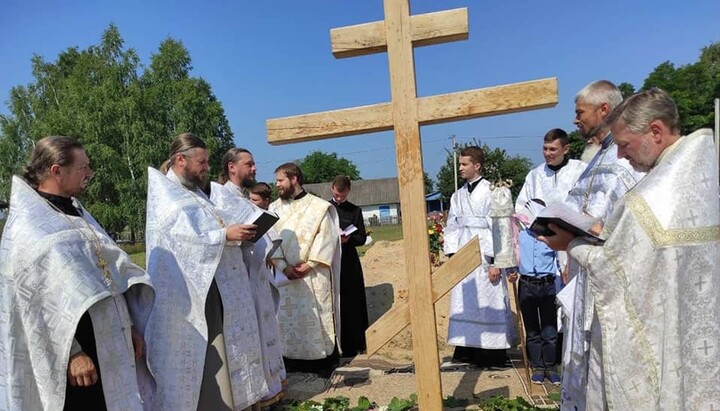 Erection of a cross and laying of a stone at the construction site of a new church of the UOC in the village of Serkhiv of the Volyn Eparchy of the UOC. Photo: Facebook page of the CF Erection of a cross and laying of a stone at the construction site of a new church of the UOC in the village of Serkhiv of the Volyn Eparchy of the UOC. Photo: Facebook page of the CF "Favor"