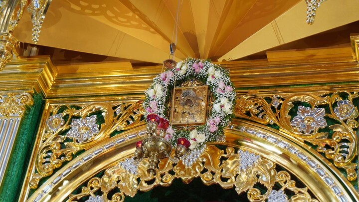 After the festive liturgy, the archpastors, pastors, brothers of the monastery, and pilgrims solemnly carried the miraculous icon in a procession back to the Dormition Cathedral, where the icon is usually located above the Royal Doors. There, a festive moleben with a prayer to the Theotokos was held.
