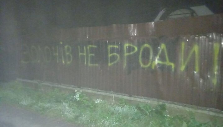In July 2020, during the "veche" against the canonical UOC, Igor Grynkiv with a sledgehammer threatened to smash the fence of the house of the UOC priest, Fr Maxim Yoenko, in Zolochiv; and in September 2020, during one of the attacks, unknown activists wrote on the priest's fence the words "Zolochiv is not Brody!"