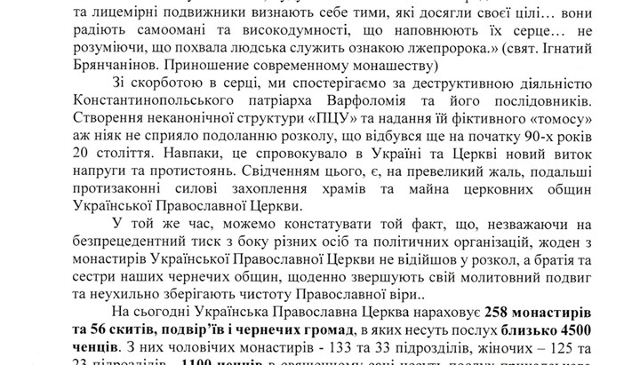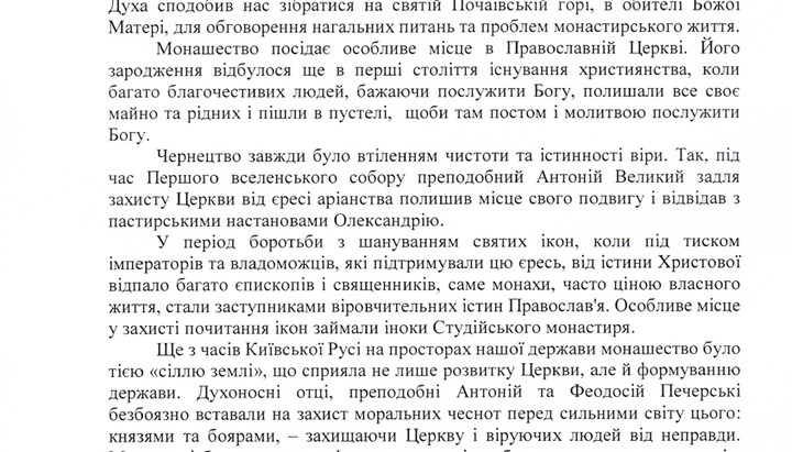 The full text of the document was published on Thursday, July 29, on the website of the Kyiv-Pechersk Lavra.