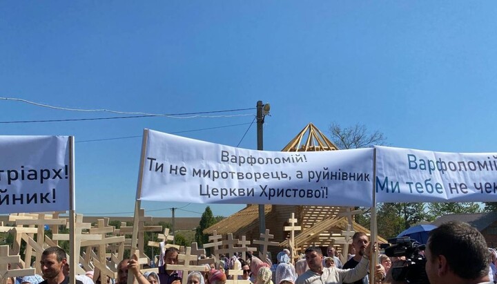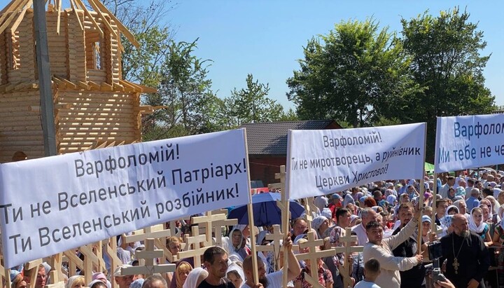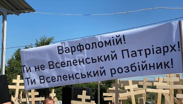 During the divine service in the Josaphat Valley, believers of the Vinnytsia diocese were holding posters which described their attitude to the visit of the head of Phanar to Ukraine: “Bartholomew – you are not a peacemaker, but a destroyer of the Church of Christ!”, “Bartholomew! We are not waiting for you! " and “Bartholomew! You are not the Ecumenical Patriarch, but the Ecumenical Robber!"