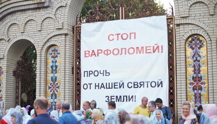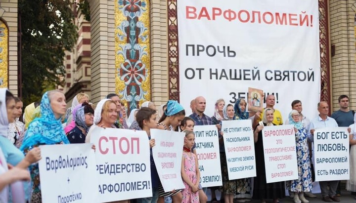 A flash mob # STOPVARFOLOMEY against the arrival of the Phanar head in Ukraine was held near the Cathedral of the Ukrainian Orthodox Church in Kharkiv, said Hierodeacon Daniel Gavrilin, a cleric of the Kharkiv Eparchy, on his Facebook page.