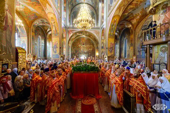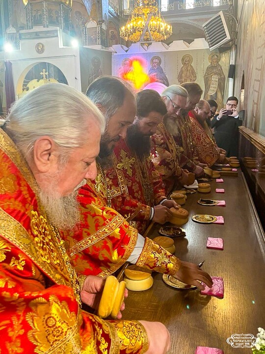 The Divine Liturgy at the cathedral in Cherkasy was led by Metropolitan Theodosiy of Cherkasy and Kaniv. He was concelebrated by Metropolitan Bogolep of Oleksandriya and Svitlovodsk, Archbishop Alexander of Horodnytsia, Vicar of the Kyiv Diocese, Archbishop Ioann of Zolotonosha, Vicar of the Cherkasy Eparchy, Archbishop Veniamin of Novosanzhary, Vicar of the Poltava Eparchy, Archbishop Kassian of Ivankiv, Vicar of the Kyiv Eparchy, Archbishop Sergiy of Ladyzhyn, Vicar of the Tulchyn Eparchy, Bishop Athanasius of Kamin-Kashyrsk, Vicar of the Volyn Eparchy, Bishop Cyril of Byshiv, Vicar of the Kyiv Eparchy, Bishop Anthony of Korsun-Shevchenkivsk, Vicar of the Cherkasy Eparchy, Bishop Ioann of Izium and Kupiansk, and Bishop Clement of Borovsk, Vicar of the Kyiv Eparchy.