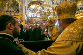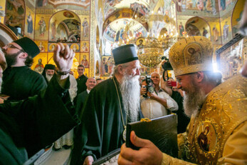 On September 5, the UOC Chancellor, Metropolitan Anthony of Boryspil and Brovary, on behalf of His Beatitude Metropolitan Onuphry, congratulated Metropolitan Joanikije on his enthronement and presented the new Metropolitan with a bishop's сrosier, and Metropolitan Sergiy of Ternopil and Kremenets – a copy of the Pochaiv miraculous icon of the Mother of God, reports news.church.ua.