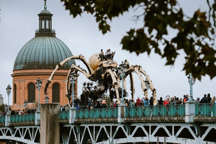 Three gigantic robotic puppets of mythological creatures took part in the performance across the city: Lilith the scorpion woman – half-woman, half-scorpion with spider legs and ram horns, Ariane the spider-woman and Asterion the Minotaur. This performance was staged by the French street theater company La Machine.